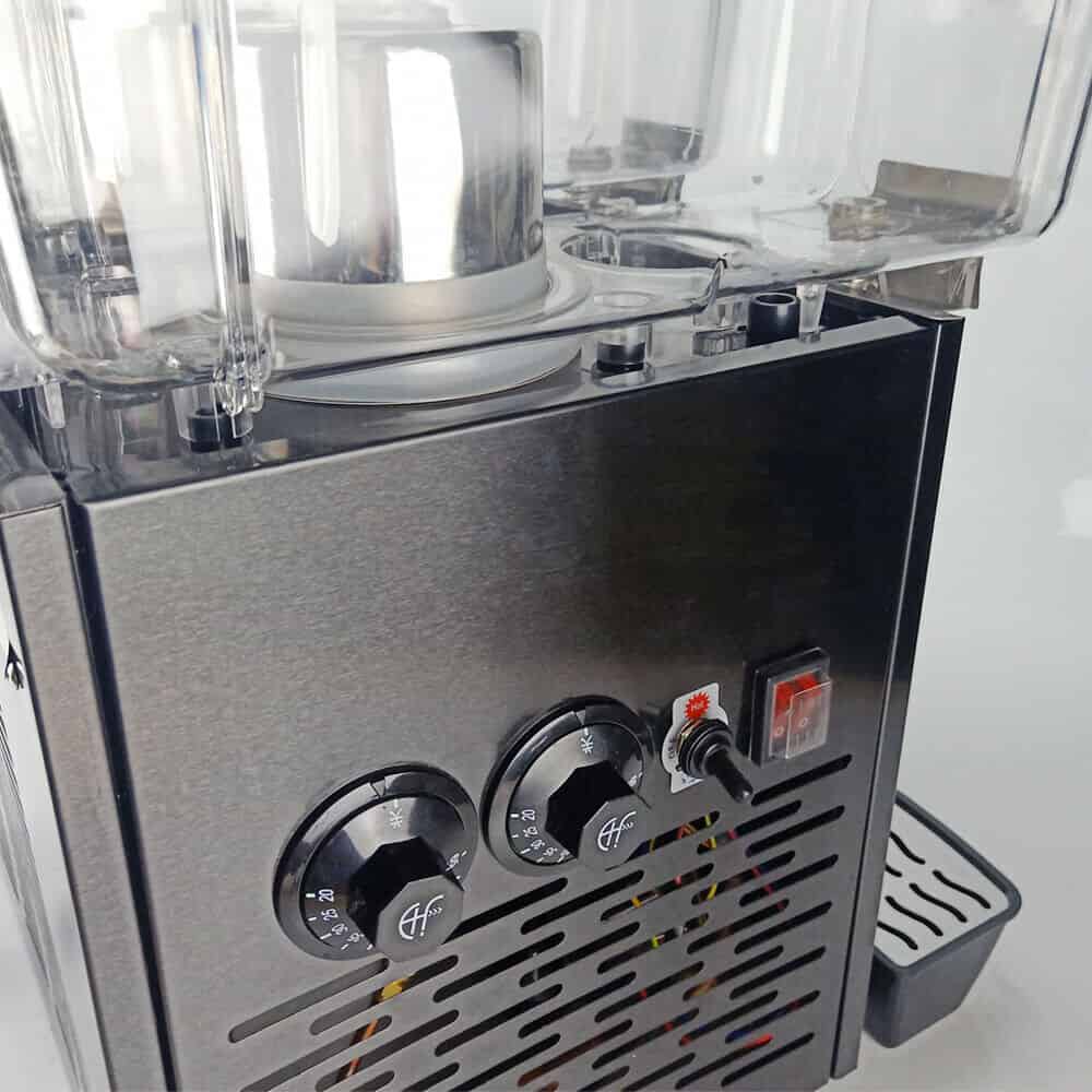 A hűtés/fűtés folyadékáramlással történik egy rozsdamentes acél elpárologtatón keresztül. A folyadék "szökőkút" stílusban folyik, majd közvetlenül a tartályban keveri a gyors és hatékonyabb hűtés/fűtés érdekében.