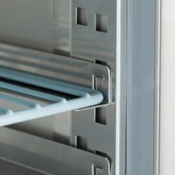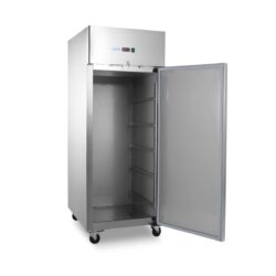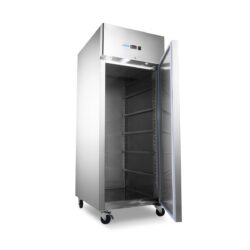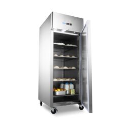 Ez a nagy teljesítményű, 800 literes teljes fagyasztókapacitású fagyasztó minden pékség igazi kincse. Belül 10 db, 60 x 40 cm-es, állítható magasságú polc található. Alapfelszereltségként 10 db vezetősínnel rendelkezik, amelyek 60 x 40 cm-es polcokat tudnak befogadni. A térfogat megduplázására is van hely, akár 60 x 80 cm-re. A polcok nem tartozékok, de külön megrendelhetők az online áruházban. Ez a professzionális fagyasztó önzáró ajtóval és antibakteriális gumitömítésekkel rendelkezik. Zárral is rendelkezik, és két kulccsal rendelkezik. A belső tér LED-világítással lett ellátva, hogy könnyebben látható legyen, milyen termékek vannak a fagyasztóba helyezve.