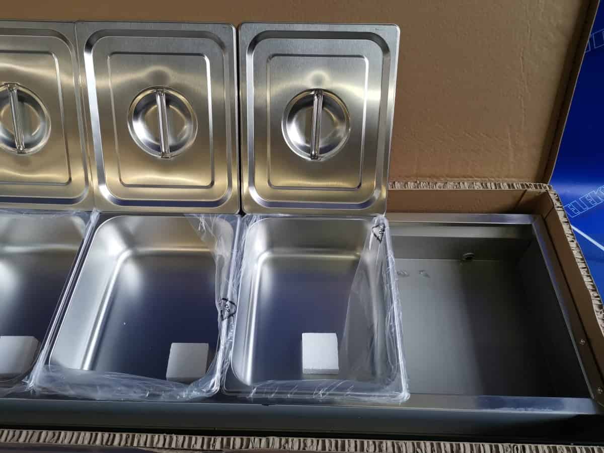 - Adagoló vízfürdő 6 x GN1/2, egyenként 5,5 liter térfogatú fedővel együtt.
