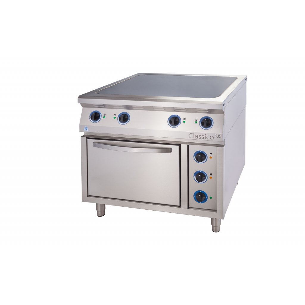ALBA EC-TG RHB-4/700 Üvegkerámia tűzhely – 4 égős Változat: EO – sütővel Elektromos tűzhely üvegkerámia főzőlappal és ellenállásfűtéssel professzionális nagykapacitású konyhákban használatos főzésre, sütésre, sütésre stb.