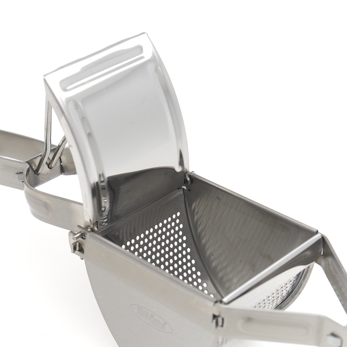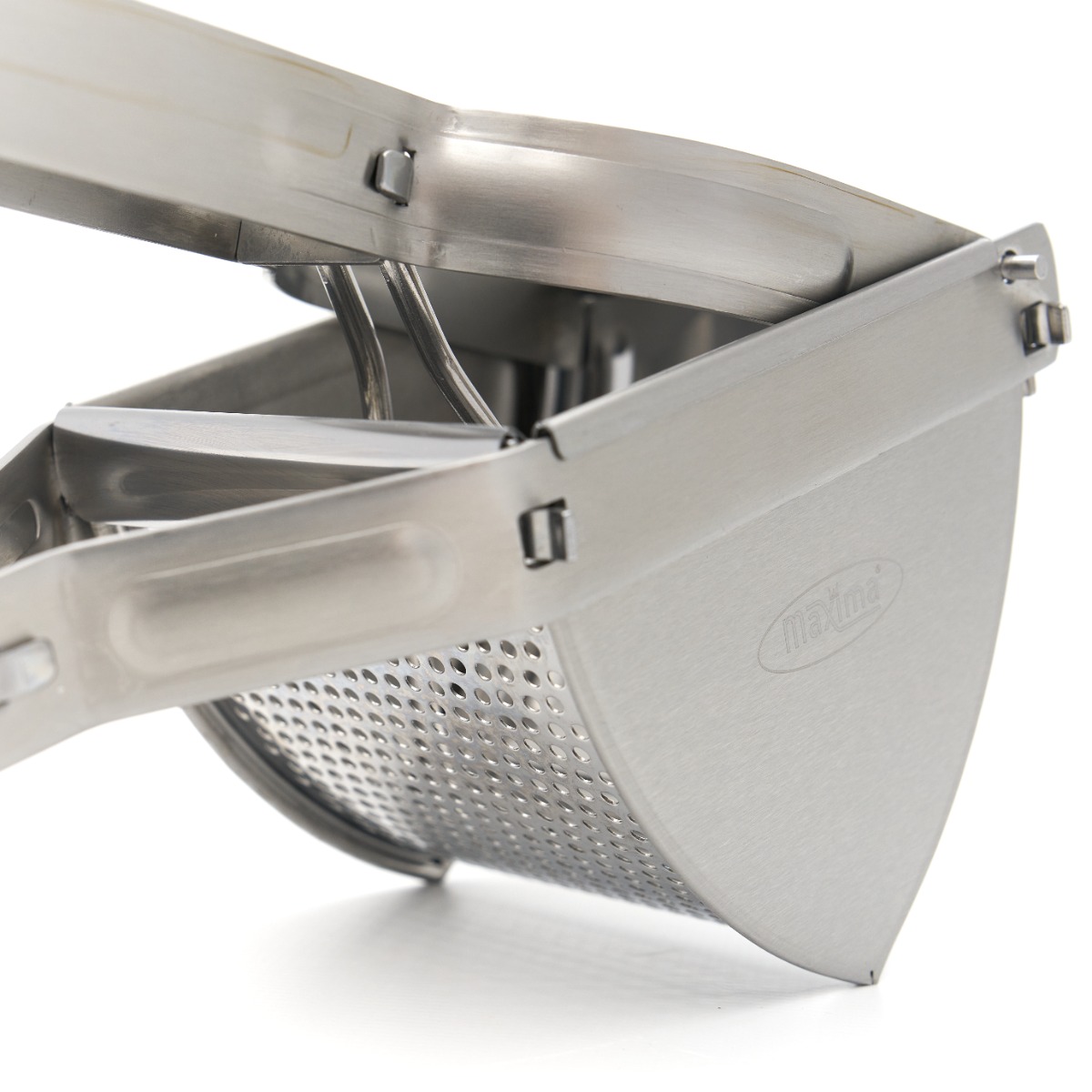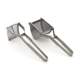 Főzd meg és hámozd meg a zöldségeket, majd egyszerűen helyezd őket a rizsprés kamrájába. Nyomd össze a hosszú fogantyúkat, és a megfőtt zöldségek átnyomódnak a perforált lemezen, így sima és egyenletes eredményt kapsz. Ez egy gyors és hatékony módja a burgonya vagy a puha zöldségek feldolgozásának elektromos áram használata nélkül. Kerüld a rostos vagy kemény hozzávalókat, mivel a prés puha, főtt termékekhez készült.