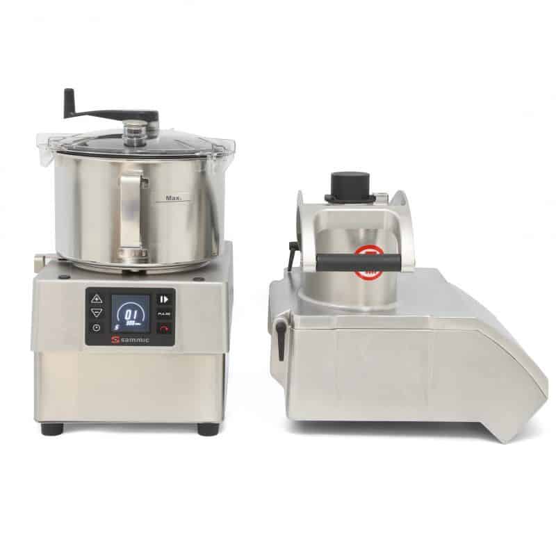 A Sammic CK-35V multifunkcionális készülék tökéletes termék azok számára, akik értékelik a kényelmet és a teljes professzionalizmust. Egyesíti a szeletelők és a vágó-emulgeálószerek használatának előnyeit. A rozsdamentes acél kialakítás garantálja a tartósságot és az ellenállást a külső behatásokkal szemben. A letisztult és intuitív kezelőpanel biztosítja a CK-35V rendkívül egyszerű kezelését. A Sammic multifunkcionális eszköz egyesíti a szeletelő és a vágó-emulgeáló használatának előnyeit. A termék ideális azok számára, akik értékelik a kényelmet és a teljes professzionalizmust. A kiváló minőségű rozsdamentes acél konstrukció hosszú élettartamot és ellenállást biztosít a külső tényezőkkel szemben. Minden készülék fel van szerelve: – motoros blokkal – zöldségszeletelő fejjel (beömlőnyílás mérete: 136 cm2) – kutter-emulgeáló tartállyal, modelltől függően, 5,5 l térfogattal. A motorblokk kiváló minőségű alumíniumötvözetből készült. A vízálló, áttekinthető kezelőpanel LED háttérvilágítással könnyen kezelhető. A test nagyfokú tömítettsége megakadályozza a motor túlfolyását. Kivehető rozsdamentes acél tartály polikarbonát fedéllel. A fedélen található nyílás lehetővé teszi további hozzávalók hozzáadását működés közben. A kutter-emulgeáló tartály mindenféle élelmiszer aprítására, aprítására, darálására és keverésére szolgál, különösen hasznos habok, pürék, szószok és levesek készítéséhez. Gereblyével felszerelve, amely lehetővé teszi a termékek még alaposabb összekeverését. A zöldségszeletelő feje öntött alumíniumból készült, amelyet nagy ellenállás és intenzív munkához való alkalmazkodóképesség jellemez. Erőteljes, „kefe nélküli” technológiával készült motor, amely hatékonyan fenntartja a nyomatékot mind a 10 sebességtartományban. Fordított sebesség funkció a még homogénebb termékért. Impulzus funkció, amely alkalmas a kényes ételek aprítására, hogy azok ne őrlődjenek péppé (csak az emulgeáló modulhoz).