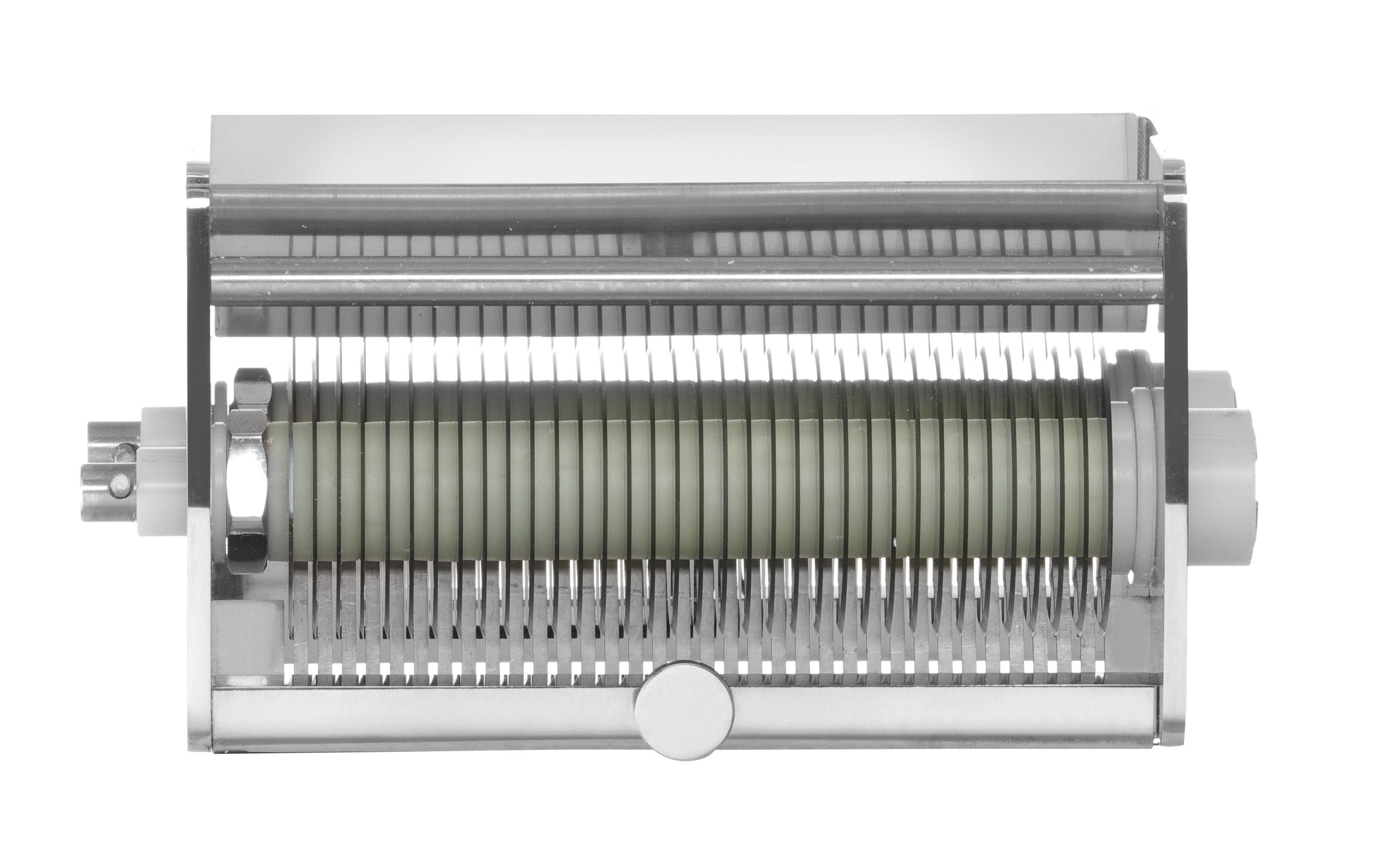 Rozsdamentes acél ház és pengék. 2 db penge 4 mm széles csíkok vágásához. Henger hossza 165 mm.