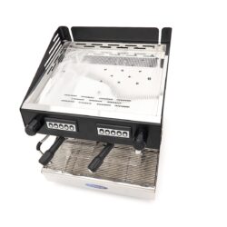 Ez a kompakt eszpresszógép minden vendéglátóhely igazi kincse. Nemcsak számos funkcióval rendelkezik, hanem nagyon megbízható is. A gyönyörű, fekete fémház luxus és elegáns megjelenést kölcsönöz neki. 6,5 literes kazánnal rendelkezik, ami azt jelenti, hogy óránként akár 360 csésze kávét is képes lefőzni. Emellett dupla csoportos fejjel és közvetlen előfőző kamrával is fel van szerelve. Minden csoporthoz négy kávéadagolási lehetőség áll rendelkezésre: eszpresszó, nagy kávé, két eszpresszó és két nagy kávé, így kiválaszthatja a vendégének megfelelő kávékészítési módot. A cseppszűrő krómból, a tágas csepptálca pedig rozsdamentes acélból készült.