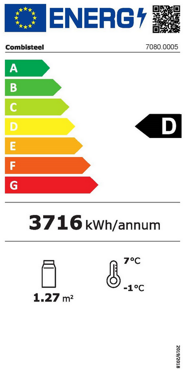 Teljesen fekete hűtővitrin éjszakai rolóval és alsó üvegsorompóval 150cm magassággal EAN kód: 7422242914915 Szélesség (mm): 1000 Mélység (mm): 660 Magasság (mm): 1500 Szín: Fekete Bruttó tömeg (kg): 120 Elektromos feszültség (230 V):5 (kW): 1,2 Asztali/szabadon álló/betétes modell: Szabadon álló hűtőközeg: R 290 Hőmérséklet tartomány (°C): +2/+8 Bruttó kapacitás (Ltr): 290 Kijelző terület (m2): 1,43 Fények: Igen, LED Hűtés típusa: Szellőztetett Szintek száma: 3 Nézőablak: Igen ívelt. környezeti hőmérséklet (°C): 25 Energiacímke: D Márka: COMBISTEEL Hűtőközeg mennyisége (gr): 275 Plug and play (csak EU): Igen