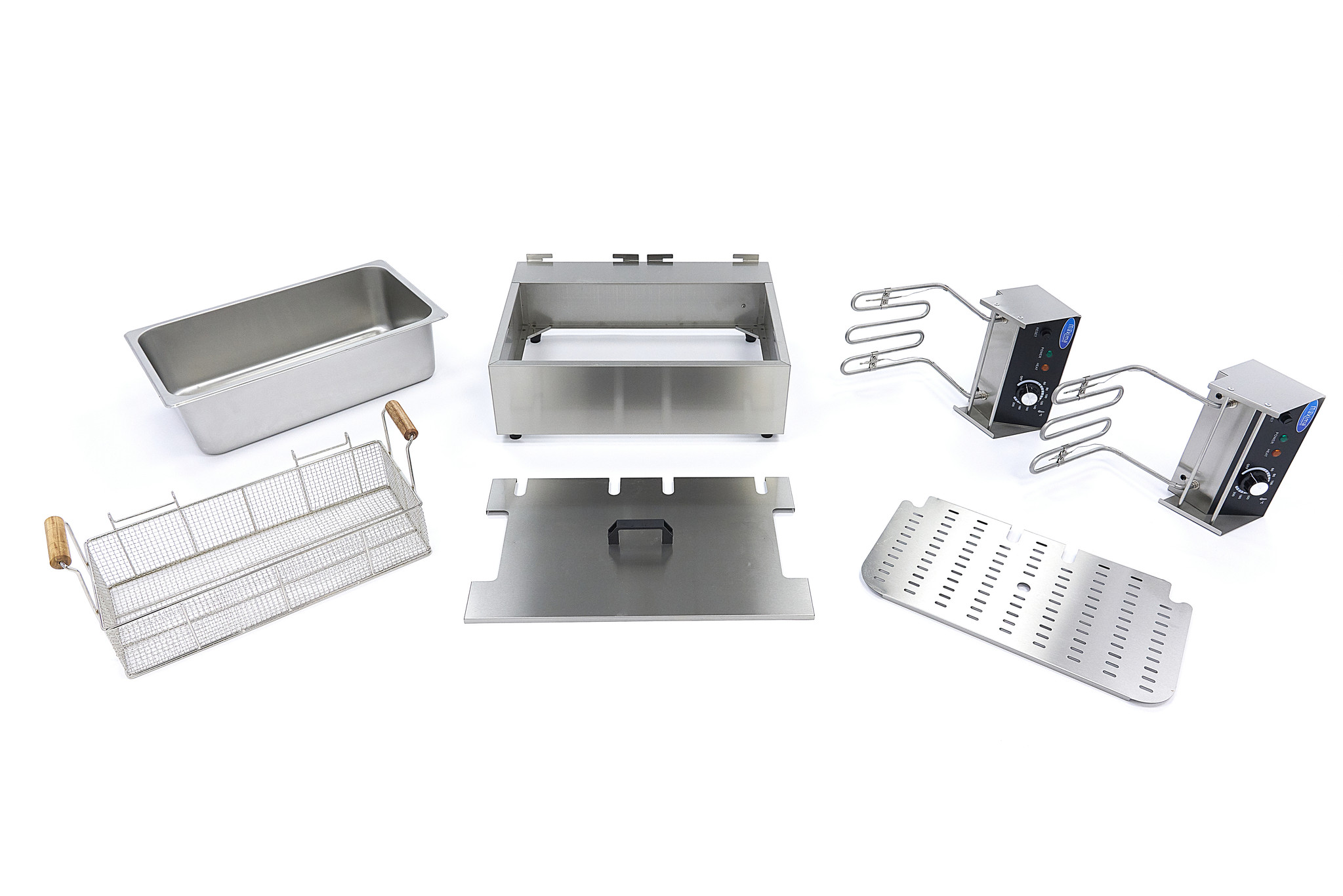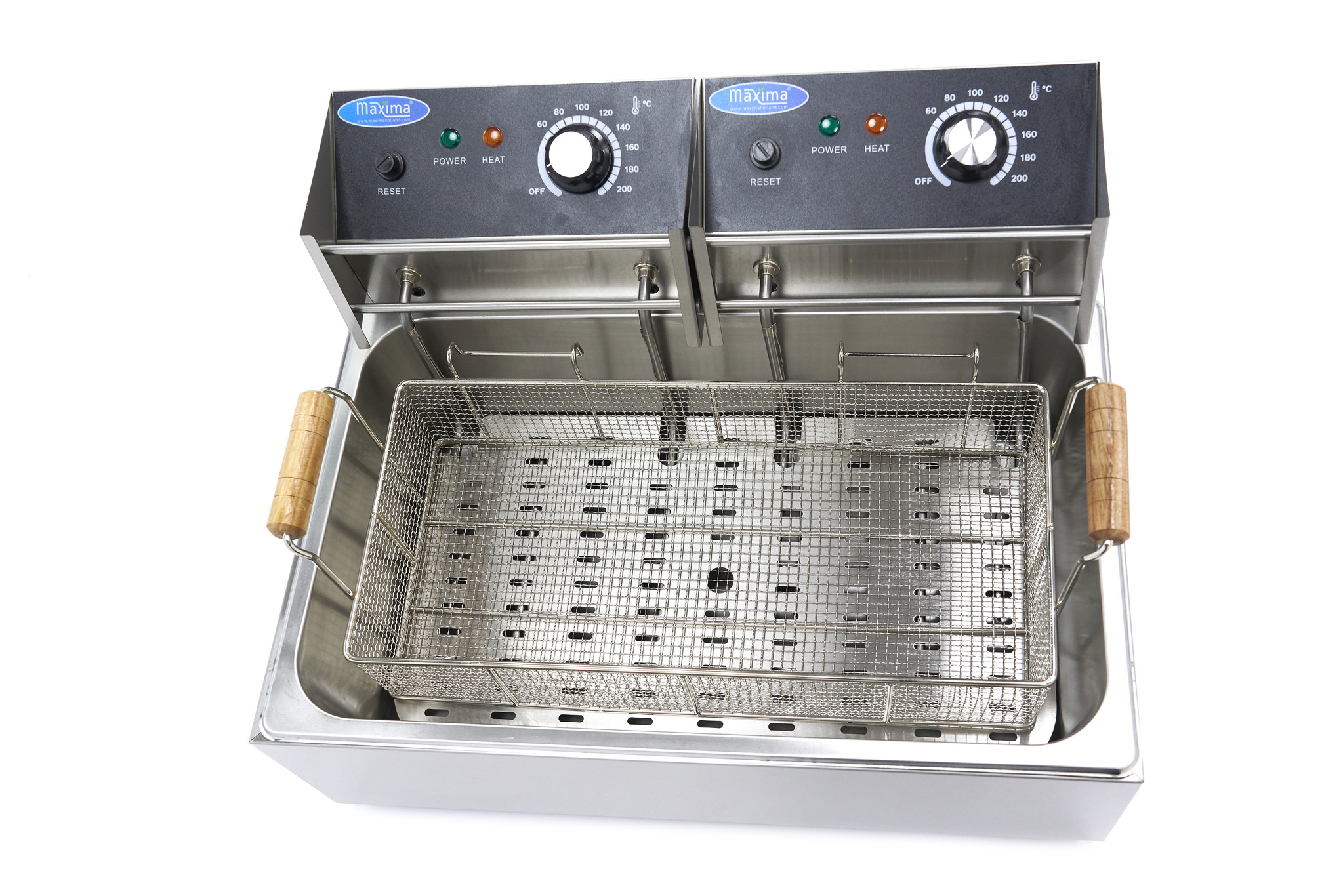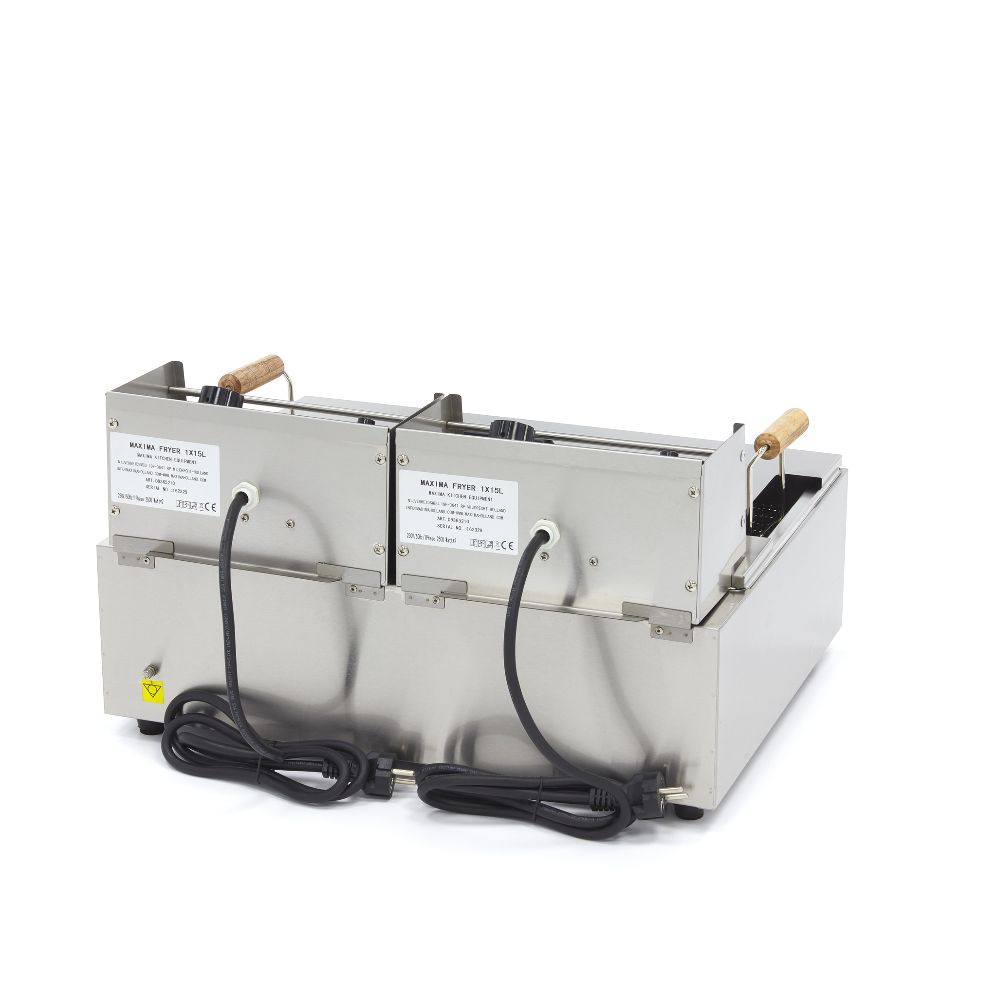 Ha rendszeresen süt nagy mennyiségű ételt a vendéglátóhelyén, ez a professzionális, 15 literes fritőz ideális választás. Két különálló fűtőelemből és egy nagyméretű sütőkosárból áll. A két fűtőelemmel rendelkező fritőz előnye, hogy nincs szüksége sok energiára. Tehát bármilyen konyhában is van, csak be kell dugni a fritőzt egy hagyományos konnektorba. A hőálló fogantyúkat használhatja a sütőkosár emelésekor a sérülések elkerülése érdekében, a mellékelt fedél pedig megakadályozza az olaj kifröccsenését használat közben. A készülék alján található gumilábak biztosítják a stabilitását és szilárdságát a legtöbb felületen.
