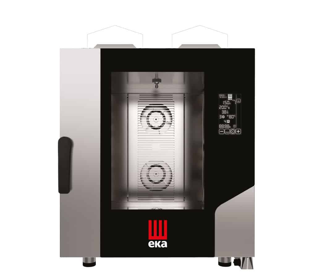 Millenial Black Mask Gasztro kombinált gőzsütő. 7 db GN 1/1 tartályhoz tervezve. A sütő fekete, 7 hüvelykes érintőpanellel rendelkezik, amely kikapcsolt állapotban teljesen belebújik a fekete ajtóba. Az Airflowlogic funkció egy olyan megoldás, amely a páraelszívó újratervezett kialakításának köszönhetően javította a levegő keringését a ventilátoron keresztül. A Humilogic egy új párásító rendszer, amely közvetlenül a ventilátorból szállítja a vizet. Ez biztosítja a magas páratartalmat, ami csökkenti a vízfogyasztást. A Drylogic szintén innovatív rendszer. Egy számítógép által vezérelt ventilátor szabályozza a légcserét a kamrában, és eltávolítja a felesleges nedvességet. A főtt termék belsejében lévő hőmérsékletet pontszondával mérjük. Az előmelegítés 30 fokra melegíti fel a sütőkamrát, míg a Cooldown funkció lehűti a kamrát, így megkezdődhet a következő sütési folyamat. Az USB tároló megkönnyíti az új főzési receptek és HACCP adatok feltöltését. Ideálisan működik sütőkamraként és bankettként is. A szakácskönyv akár 100 receptet is tartalmazhat, mindegyik 10 lépéssel. Hőmérséklet szabályozás 30 foktól;C-270 fok;C. A dupla üvegezésű ajtók nyitható zárral vannak felszerelve, amely megvédi a meghajtást az ellenőrizetlen mozgástól. Az ajtótömítés strapabíró szilikonból készült, melyet Ön is könnyedén cserélhet. Egy horony az ajtó alatt. LED kamravilágítás. A szigetelt sütőhéj elektromos energiát takarít meg. Sütőkamra és burkolat rozsdamentes acélból. A sütő vízszintbe állítása az állítható lábaknak köszönhetően lehetséges. Villanyra, tisztított vízre és szennyvízre csatlakozás szükséges. Gyári beépítés földgázra.