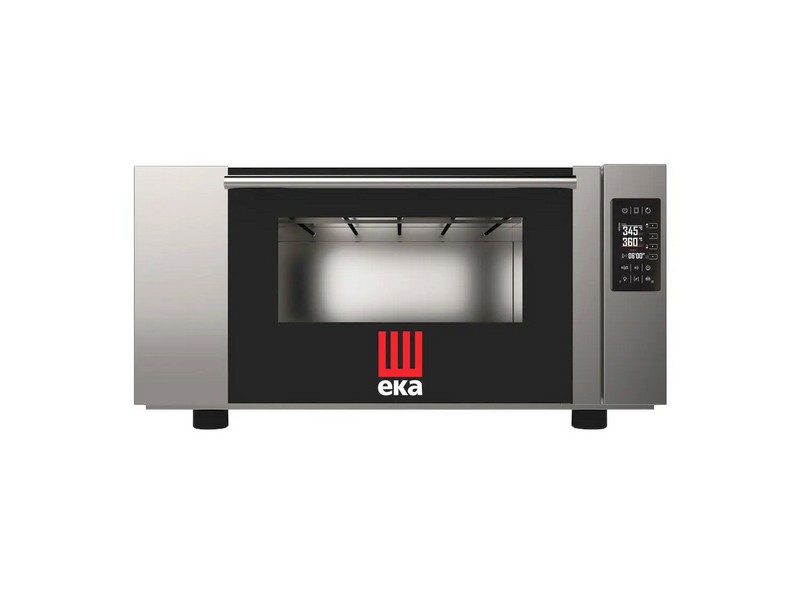 Ideális megoldás gasztronómiai létesítmények számára, mint például pizzériák, éttermek, étkezdék, pékségek vagy éttermi konyhák, különösen cukrászsütemények, pékáruk vagy pizzatermékek elkészítéséhez a munkafolyamat legmagasabb szintjén. Programozható – 50 recept tárolásának lehetősége a készülék memóriájában. Kamra 600×400-as tálcákhoz (MKF D1T modell) vagy két, egy szinten tárolt 600×400-as tálcához (MKF D2T modell). Könnyen használható és intuitív érintőképernyős vezérlőpanel. Fűtőelemek és termosztátok beállítása a kezelőpanel gombjaival. Időzítő. Maximális hőmérséklet: 350˚C. A gőzölő rendszer számos különféle péksütemény elkészítésére teszi alkalmassá a sütőt. A teljes kamra AISI 430 rozsdamentes acélból készült. Tömítési tényező: IPX3. Fűtőelemek száma: 6