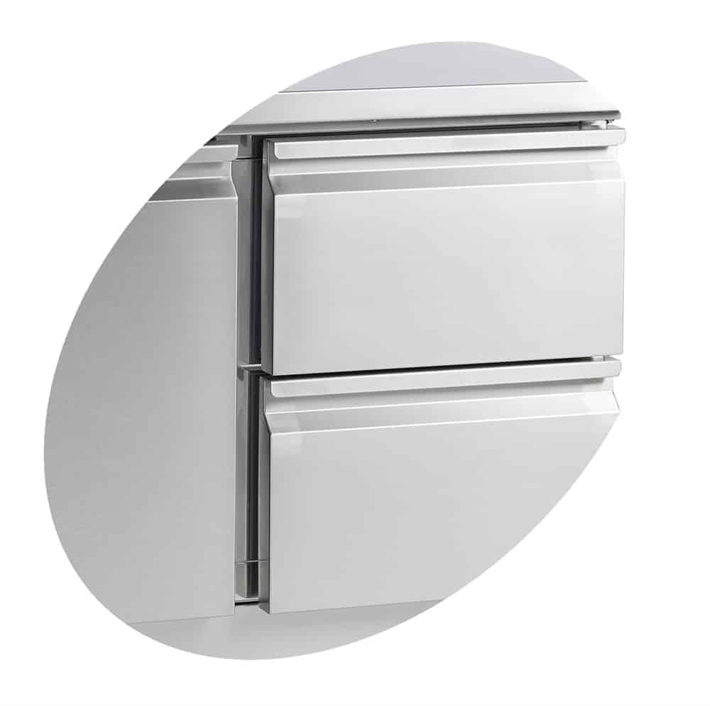 Rozsdamentes acél GN1/6 Gáztartályokhoz Automatikus leolvasztó Ajtó Állítható lábak Ventilátoros hűtés Hőmérséklet tartomány +2 és +10 °C Klímaosztály 4 Bruttó / Nettó tömeg: 90 / 80 kg Bruttó / Nettó térfogat: 228 / 201 l Lábak: 4 állítható lábak Külső felület: SS304 Belső felület: SS304 2 zsanéros tömör ajtó 2 fehér drótpolc Polc színe: Fehér Polcméretek: GN1/1 Vezérlés típusa: elektronikus Hűtés típusa: szellőző Leolvasztás típusa: automatikus Hűtőközeg: R600a Hűtőközeg töltés: 68 g Hőmérő Igen Fogyasztási energia : 2 kWh/24h Éves energiamegtakarítás : 730 kWh/év Bemenet : 155W Feszültség / Frekvencia : 220-240/50 V/Hz Zajszint : 42 dB(A) Belső méretek (SzxMéxMa) : 805 mm x 5001530 Külső méretek (SzxMxMa) : 900 x 700 x 950 mm Csomag méretei (SzxMéxMa) : 980 x 770 x 1170 mm
