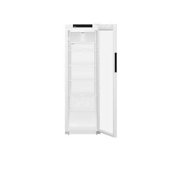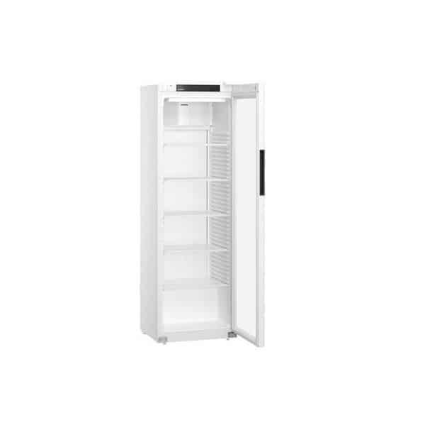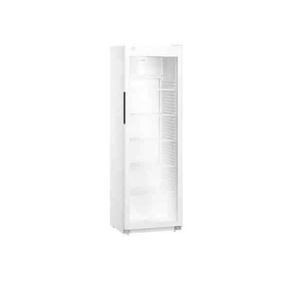 Hűtőszekrény 400 liter; szellőző hűtőrendszer; zárható SwingLine szigetelő üvegajtó (ESG biztonsági üveg), alumínium profil; kapcsolható felső LED világítás; hu.osztály C; hűtési tartomány: hűtési tartomány: + 2 / + 9 °C; mechanikus vezérlés; analóg hőmérséklet kijelző; külső acélhéj fehér porszórt bevonattal; egyrészes hőformázott polisztirol (környezetbarát) belső héj; 5 fehér megerősített acél rács STOP funkcióval és zuhanásgátlóval; a polcok magassága 35 mm-re állítható; polc terhelhetősége: max.45 kg; űrtartalom: 506 db 0,33l-es alumíniumdoboz (elöl: 7), 253 db 0,5l PET (elöl: 7), 133 db 1l PET (elöl: 7), 80 db 1,5l PET palack (elöl: 7); az ajtó automatikusan záródik (90°-tól nyitva marad) és a nyitás iránya megfordítható; higiénikus, cserélhető ajtószigetelés; süllyesztett fogantyú az ajtó szélén; automatikus leolvasztás; 1 pár elülső szintező láb; CFC-FFC-mentes hűtőközeg (R 600a) és falszigetelés (50 mm); kültéri hőmérséklet: + 10 / + 40 ° C között – CC2 klímaosztály; éves energiafogyasztás: 566 kWh; C energiahatékonysági osztály.