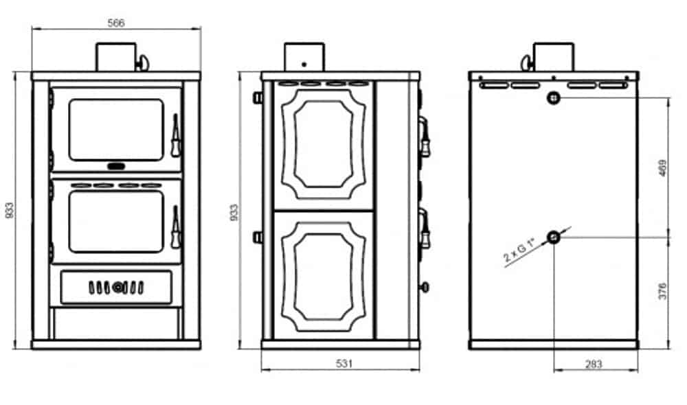 A tűztér méretei (Sz x Mé x Ma) cm-ben 47 x 43 x 24 cm