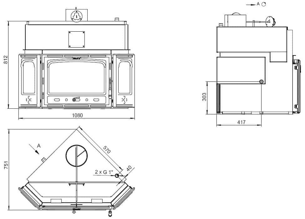 A tűztér méretei (Sz x Mé x Ma) cm-ben 87 x 58 x 33 cm