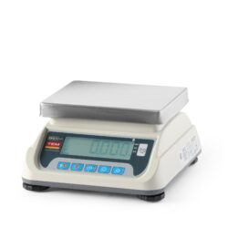 Kiskereskedelemben, vendéglátásban és élelmiszer-feldolgozásban való használatra. Egyszámjegyű mérleg: 3 kg-ig 1 g-os beosztással, 6 kg-ig 2 g-os beosztással vagy 6 kg-ig 2 g-os beosztással, 15 kg-ig 5 g-os beosztással – modelltől függően. Nagy, hatszámjegyű LCD kijelző. A kijelző két oldalról is látható. Funkciógombokkal ellátott panel: beállítás, nullázás, tára és kijelző háttérvilágítás. Mérési tartomány: 20 g – 6 kg vagy 15 kg, modelltől függően. Nagy teljesítményű 6 V-os, 4,5 Ah-s akkumulátor akár 100 órás üzemidővel. 7,8 V / 1,2 A hálózati adapter mellékelve. Beépített RS232 port lehetővé teszi a pénztárgéphez vagy címke- és nyugtanyomtatóhoz való csatlakozást. 3 mérőtálca: 2 sík (rozsdamentes acél és ABS) és egy mély ABS tálca. Az alapburkolat ABS-ből készült. Mérési terület a sík tálon: 176×223 mm. A mély tál belső méretei: 250x274x(M)67 mm. Beépített vízmérték. 4 csúszásgátló láb. Elsődleges hitelesítéssel ellátott mérleg, kicsomagolás után azonnal használatra kész.