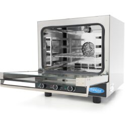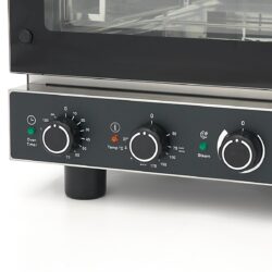 Ez a kombinált gőzsütő ideális az egyenletes főzéshez. A nagy teljesítményű rozsdamentes acél fűtőelemek teljes és hatékony hőeloszlást biztosítanak. Ezenkívül a kombinált sütő fordított funkcióval és dupla athermal üvegezéssel van felszerelve. Az ajtó nagyon könnyen állítható, az ajtótömítés pedig élelmiszeripari minőségű szilikonból készült. Az átlátszó kezelőpanelen gombokat talál a gőz, a hőmérséklet és az időzítő vezérléséhez. Széles hőmérséklet-tartományú, így szinte bármit elkészíthet benne. Időzítővel is rendelkezik, amely lehetővé teszi, hogy más feladatok mellett is főzzön. Végül a gőzölő gombbal pontosan beállíthatja a kívánt gőz százalékos arányát.