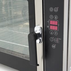Ezzel a digitális kombinált gőzölővel húst, halat vagy zöldségeket párolhat, és vitaminokat, ízt és színt is megőrzhet hosszabb ideig, mint más főzési módszerekkel. A gőzölés megakadályozza az ételek kiszáradását, és biztosítja, hogy remekül mutassanak a vendégek tányérján. A forró levegő és a gőz kombinációja sokoldalú konyhai eszközzé teszi ezt a kombinált gőzölőt, amellyel számos konyhai eszközt helyettesíthet. Ez a kombinált gőzölő ideális 1/1 GN tálcákkal vagy 60 x 40 cm-es sütőtálcákkal való használatra. Egyszerre akár négy tálca is befogadható benne.