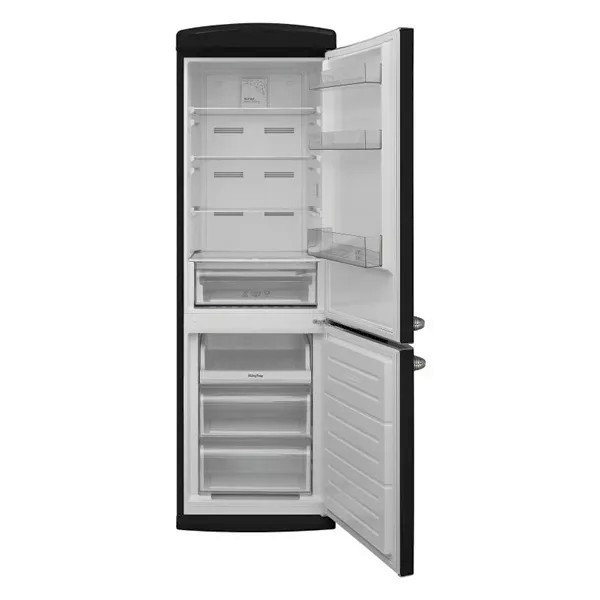 • RETRO hűtőszekrény alul fagyasztóval • magasság 191 cm • szélesség 59,5 cm • mélység 65 cm • nettó hűtőtérfogat 230 liter • nettó fagyasztótérfogat 101 liter • E energiaosztály • napi fogyasztás 0,685 kWh • éves fogyasztás 250 kWh • zajszint 39 dB • fagyasztási kapacitás 8 kg/nap • akkumulációs idő áramkimaradás esetén: 18 óra • klímaosztály SN-T • NO FROST technológia a teljes hűtőszekrényben, jegesedésmentes • 2 független hűtőkör • a hűtő- és fagyasztórekesz külön vezérlése • egyszerű vezérlés a hűtőszekrényben található áttekinthető LED kijelző segítségével • LED világítás • állítható edzett üvegpolcok • barázdált polcfelakasztás • gyorsfagyasztás • a hűtőszekrény fiókjának használati módjának beállítása (húshoz vagy zöldséghez) • tojástartó • jégforma • jégkaparó • kerekek a könnyű kezelhetőség érdekében • állítható lábak elöl • fekete EAN – 1058923000002