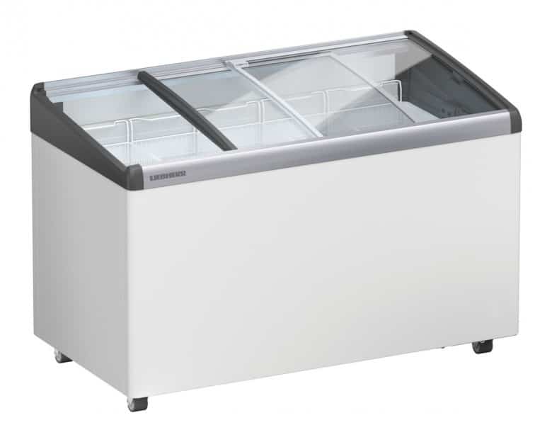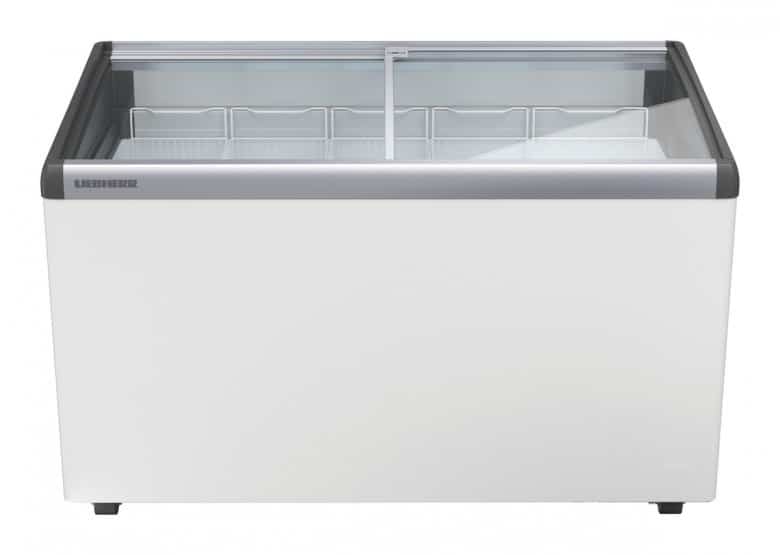 Fagylalt láda fagyasztó 355 liter; statikus hűtőrendszer (oldalsó habpárologtató és kondenzátor); 2 csúszó ferde üvegfedél (zár rendelhető); kapcsolható belső első LED világítás; a keret fűtése forró gázzal; hűtési tartomány: -10 / -24 °C; mechanikus vezérlés; analóg hőmérséklet kijelző; külső acélhéj fehér porszórt bevonattal; szürke többrészes alumínium és műanyag kompozit keret; fehér acél belső héj; tisztító lyuk; 5 kosár (4 kicsi, 1 nagy); kézi leolvasztás; 4 gumírozott bolygókerék 50 mm; CFC-FFC-mentes hűtőközeg (R 600a) és falszigetelés (60 mm); kültéri hőmérséklet: + 10 / + 35 ° C között – B klímaosztály; éves energiafogyasztás: 726 kWh; D energiahatékonysági osztály