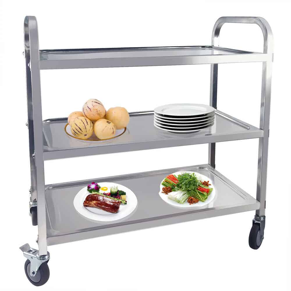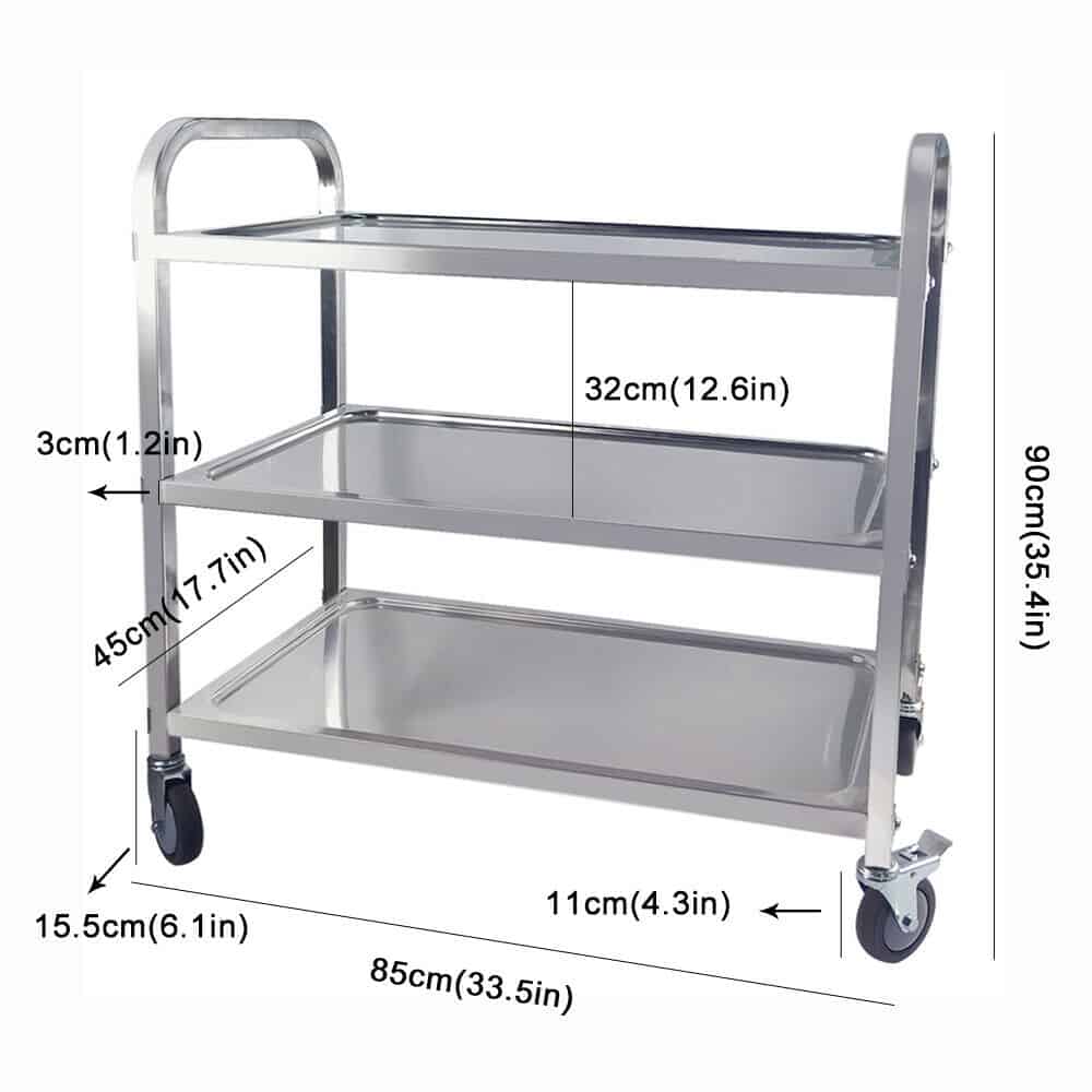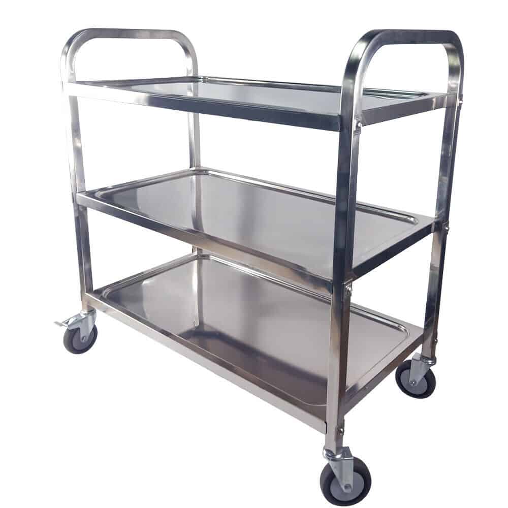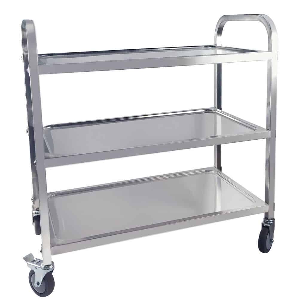 - Rozsdamentes acél szállító kocsi 3 polccal és stabil kerettel, kerek csővel,