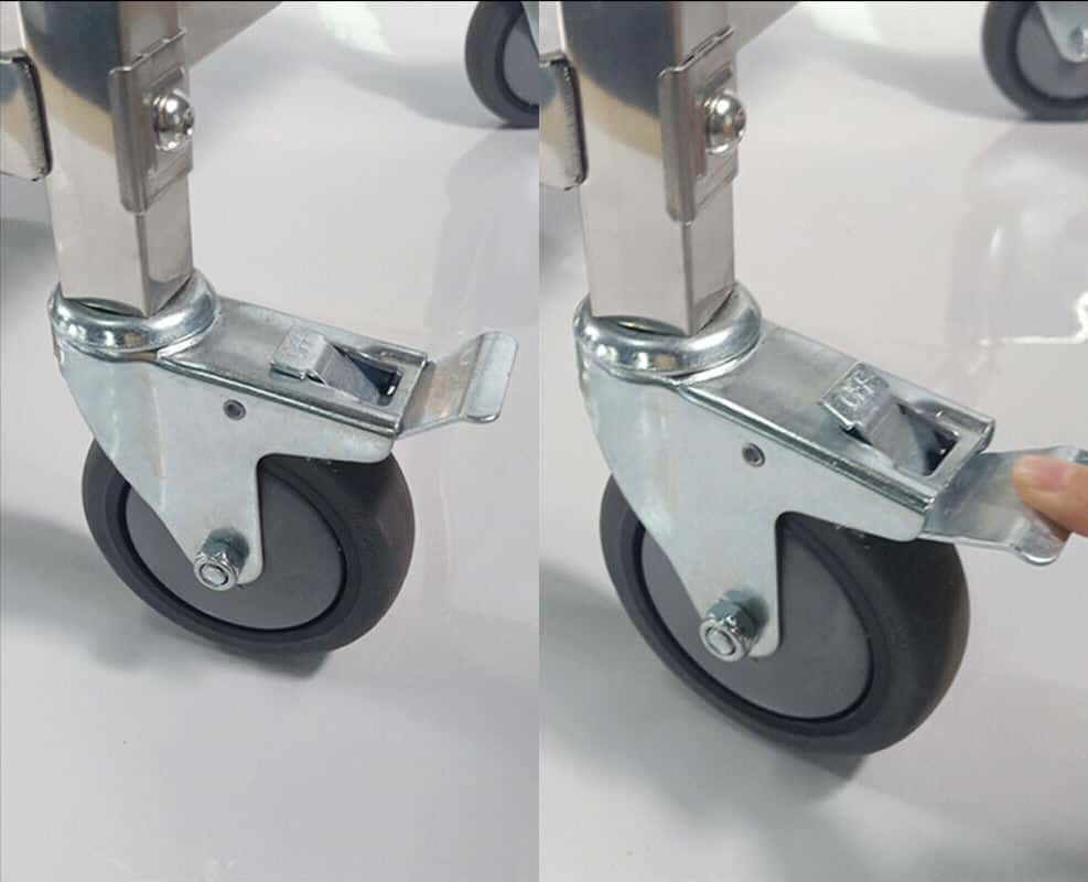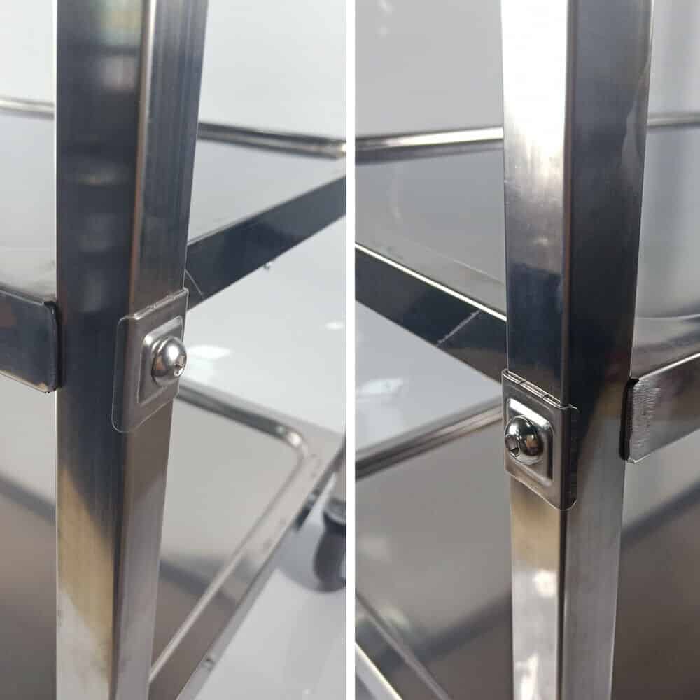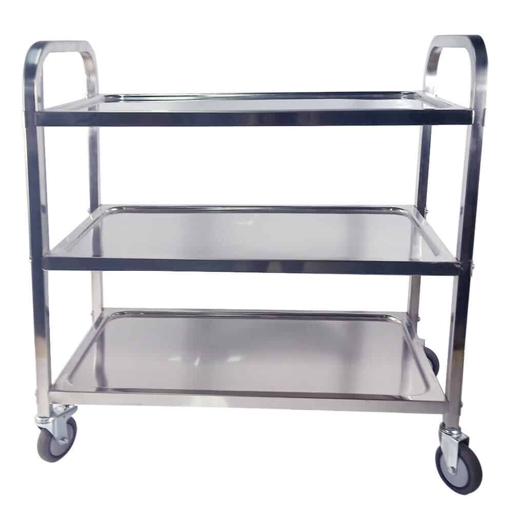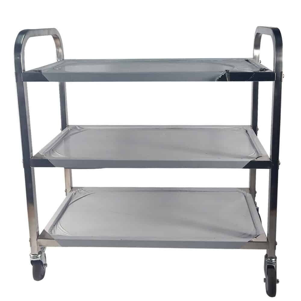 - A kerekekkel ellátott rozsdamentes szállítókocsi nagyon stabil felépítésű, nagyobb terhelésre tervezték.
