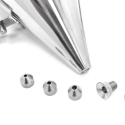 Ez a robusztus tésztaadagoló masszív kidolgozással rendelkezik, és évekig kitart. A rozsdamentes acél burkolatnak köszönhetően az adagoló ellenáll a durva bánásmódnak. A sütőformák megtöltésének még könnyebbé tétele érdekében ez a tésztaadagoló tésztaöntő állvánnyal van felszerelve. Az adagológombbal beállíthatja, hogy mennyi tésztát használjon. Ezenkívül a tésztaadagoló három, mindegyik különböző méretű töltőlyukkal van ellátva.