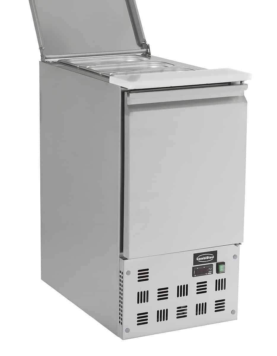 Szélesség (mm):435 Mélység (mm):700 Magasság (mm):870 Belső SZxMxM (mm):365x595x456 Anyag:Rozsdamentes acél 18/8 Belső anyag:Rozsdamentes acél 201 Feszültség (V):230 Teljesítmény (kW):0,17 Hűtőközeg: R 600 A Hőmérséklet tartomány (°C): +2/+8 Bruttó kapacitás (Ltr): 109 Tartalom GN: 1x 1/1 Statikus hűtés / szellőztetett: Statikus ventilátorral Ajtók száma: 1 Forgóajtó: Igen Zajszint (dB):48 Leolvasztás:Automatikus